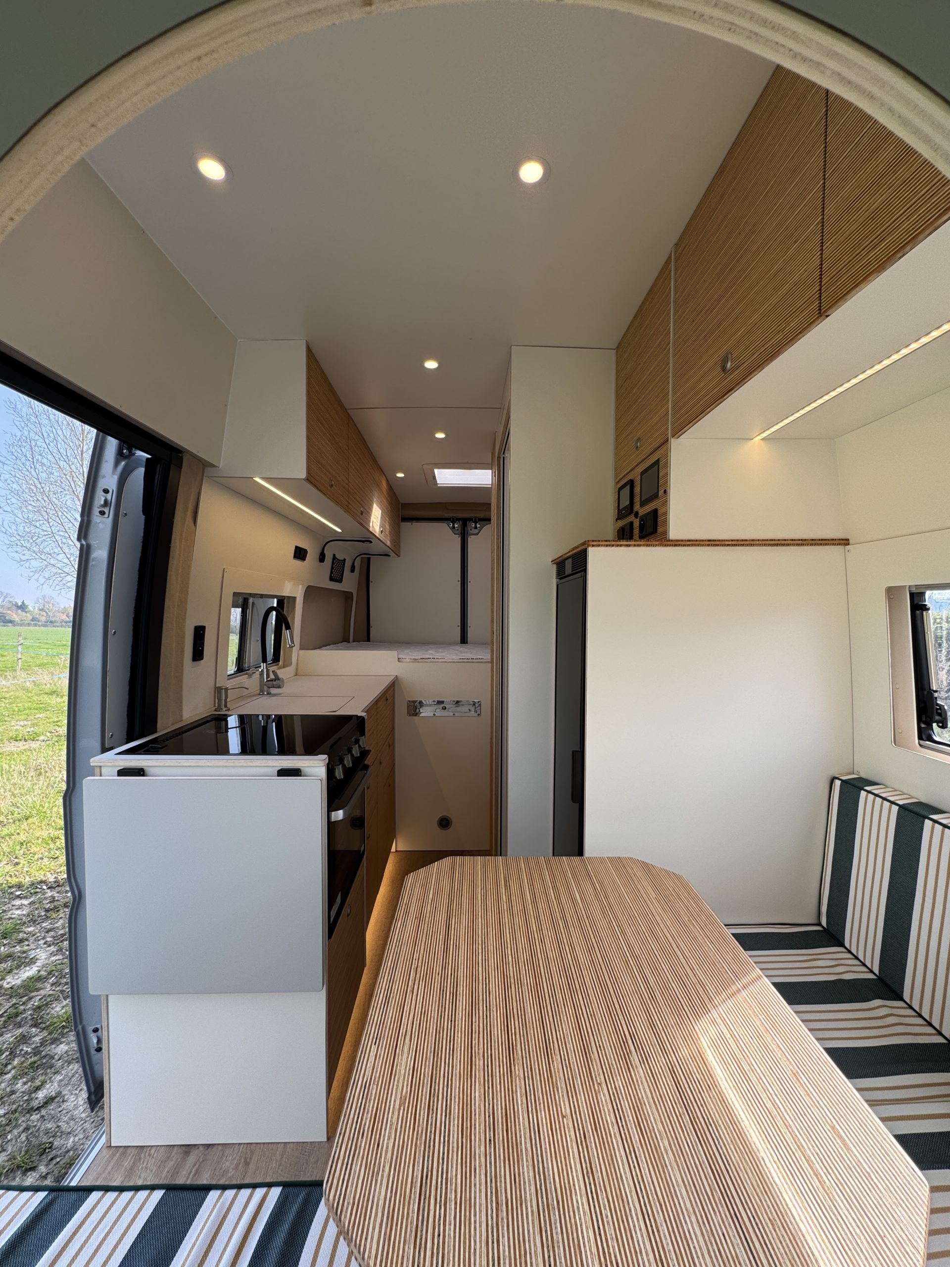 Ce Fiat Ducato L4H3 aménagé sur-mesure est pensé pour être utilisé régulièrement, avec un aménagement fiable, fonctionnel et durable.