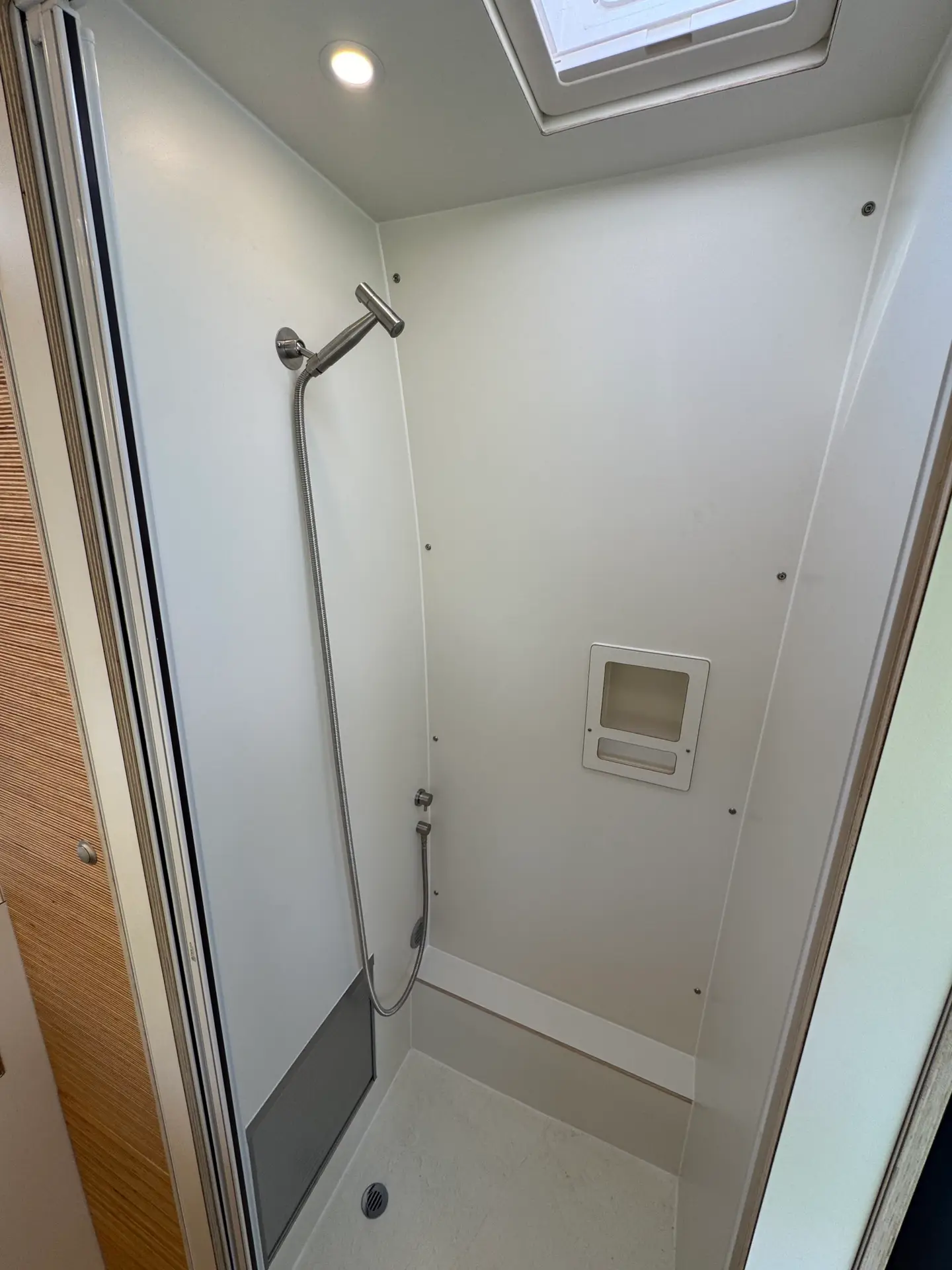 - Cabine de douche sur mesure avec toilette sèche sur tiroir coulissant