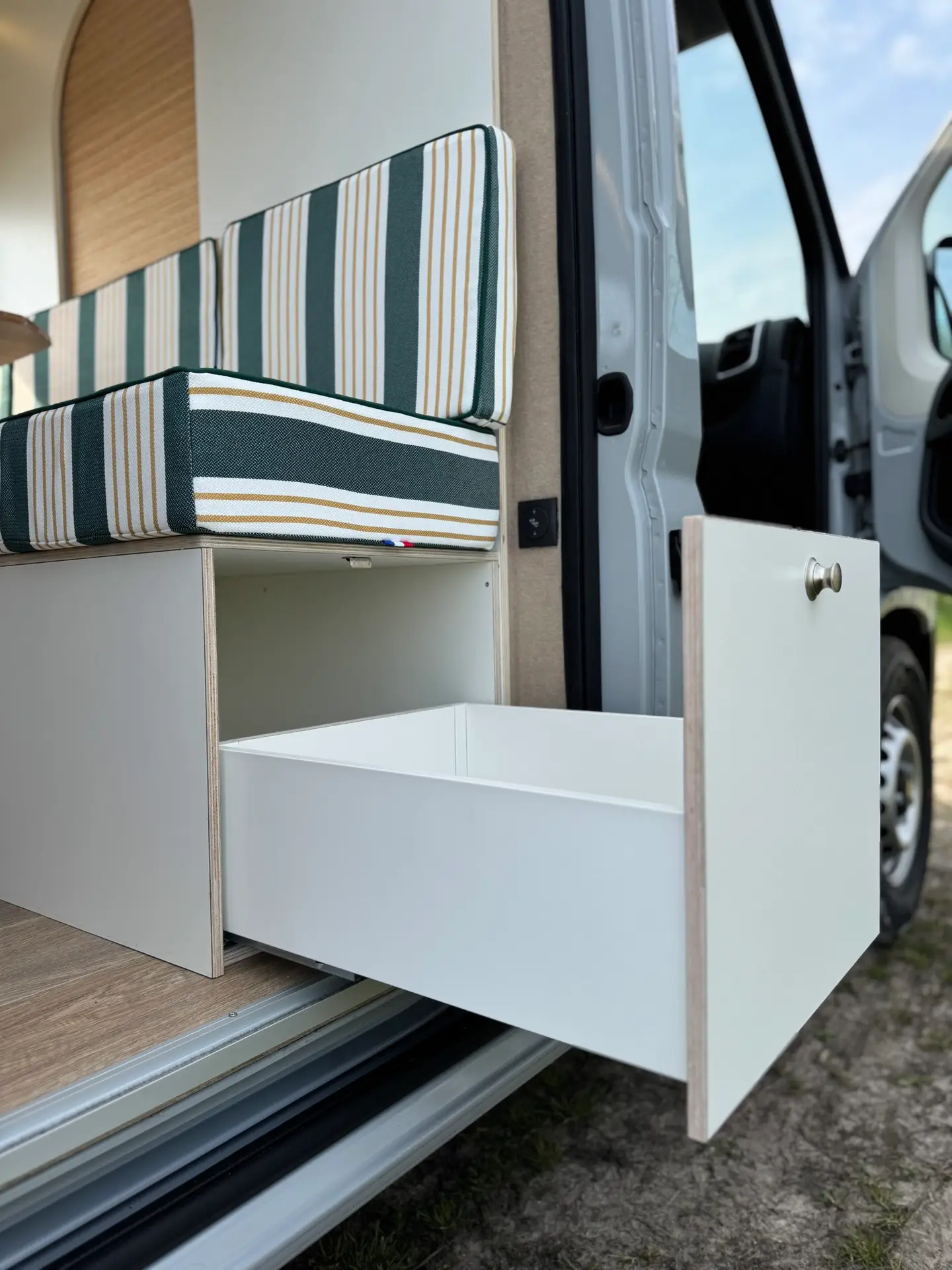 Ce Fiat Ducato L4H3 aménagé sur-mesure est pensé pour être utilisé régulièrement, avec un aménagement fiable, fonctionnel et durable.